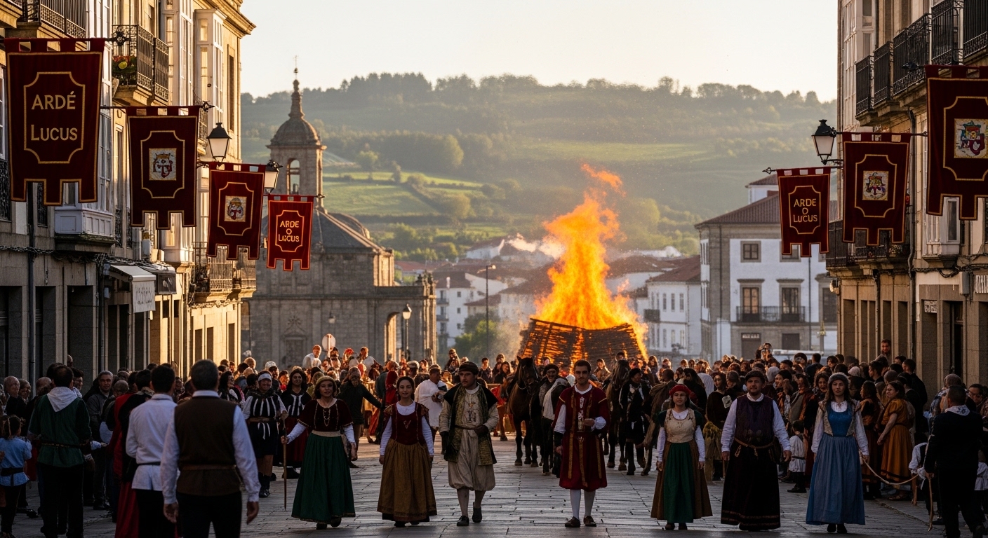 En pleno mes de junio, Lugo se transforma por completo y el presente se mezcla con la vida del antiguo imperio romano y el mundo celta. Durante Arde Lucus, las calles del casco histórico se llenan de desfiles, recreaciones y ritos que tienen como escenario la Muralla Romana de Lugo. No solo es un viaje al pasado, sino un espectáculo colectivo en el que participa toda la ciudad.